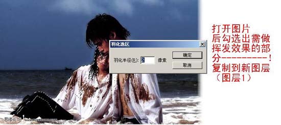 1.打開(kāi)原圖,后勾出需要揮發(fā)效果的部分,按ctrl + shift + d羽化數(shù)值為2,然后復(fù)制到新圖層
