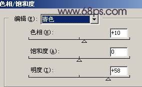 3.創建色相/飽和度調整圖層,參數設置如圖4-6,確定后加上圖層蒙版用黑色畫筆工具把人物部分擦出來效果如圖7