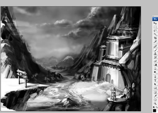 這次我們來嘗試繪制一幅依山而建的帶有中國風的城池的概念設計稿。