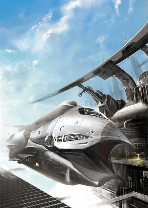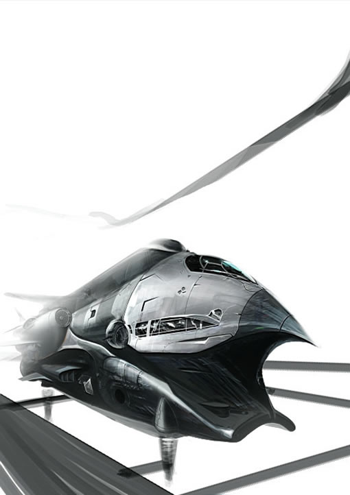 1、為了更集中于飛船的造型。我選擇先用單色進行繪制。畫出大概的透視關系和飛船的具體結構。