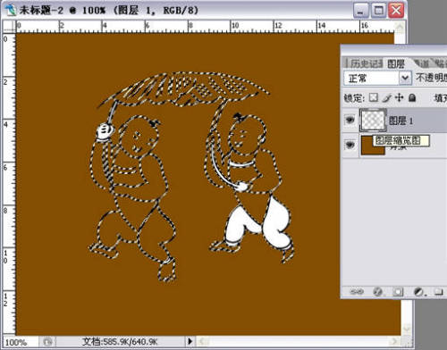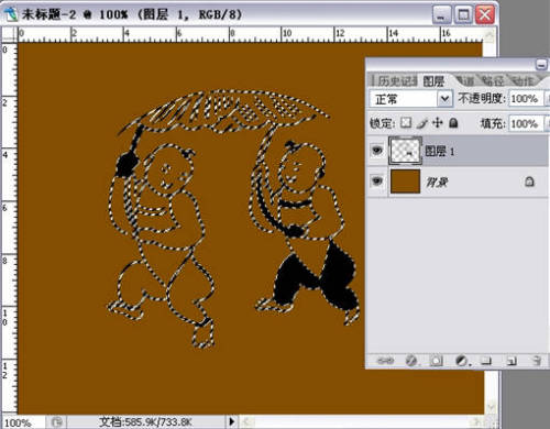將選區填充為黑色,保持選區不變,新建一層,將選區填充為白色!并取消選擇。