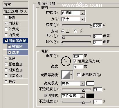 6.把除背景圖層以外的幾個圖層合并,再調出圖層樣式,參數設置如圖15,確定后完成最終效果。