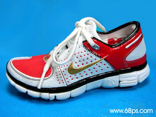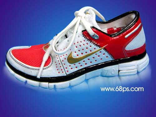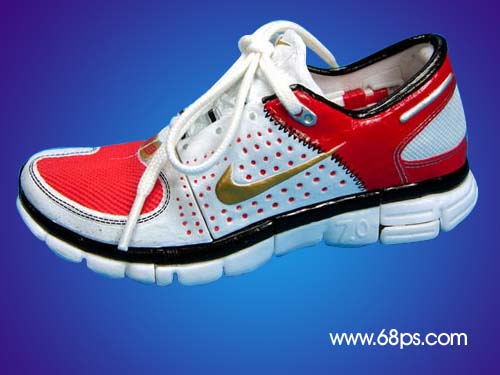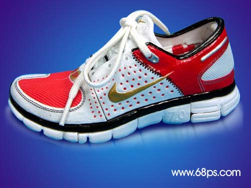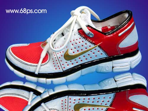 1.打開原圖,用鋼筆工具把鞋子勾出來,然后把背景拉上漸變色,效果如圖1