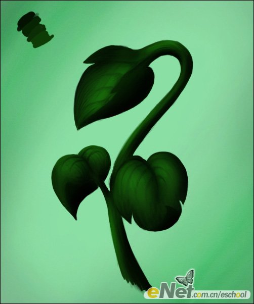 27、最后一步,用模糊工具把葉子打磨圓滑,然后用深色畫筆修正植物的輪廓。