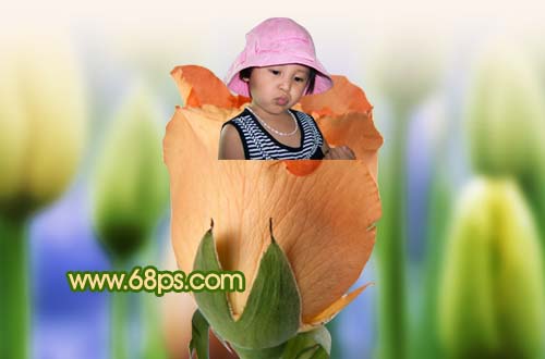 5、打開圖7所示的人物素材,用鋼筆工具把人物勾出來,然后回到剛才操作的文件,在花朵圖層上面新建一個(gè)圖層,把人物拖進(jìn)來,適當(dāng)?shù)陌碿trl + t調(diào)節(jié)下大小,效果如圖7。