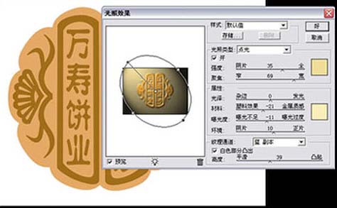 6、打開濾鏡---渲染--光照效果。把光照亮部調(diào)到左上角,使月餅看起來有立體感。