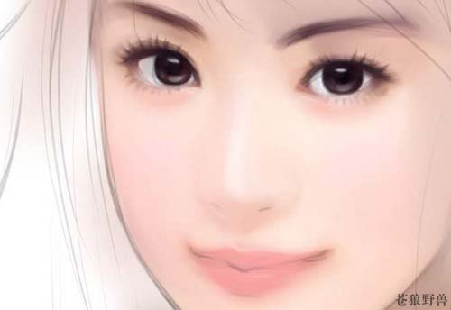 11、這個時候你就能體會到1024壓感的優越性,細節可以根據繪畫時壓力的不同而呈現不同的色彩變化。接下來是鼻子嘴巴。