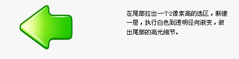 10、在尾部拉出一個2像素高的選區,新建一個圖層,用漸變拉出白色到透明的徑向漸變,作出尾部高光細節。