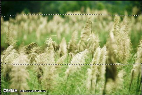 1、打開原圖素材,把背景復制一層,選擇套索工具在中間勾一長條形選區,按ctrl + alt + d羽化,數值為50,再按ctrl + shift + i反選,執行:濾鏡 > 模糊 > 高斯模糊,數值為2左右,效果如下圖。