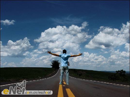 第一步:新建一個(gè)800×600像素的文件,將其命名為【沖擊波】。打開【素材1】,并使用【移動(dòng)工具】將其移動(dòng)到【沖擊波】中,將圖層重命名為【路】,如下圖所示。