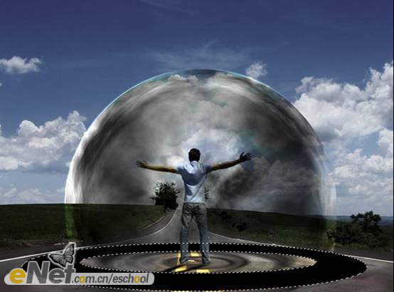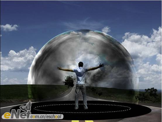 第十九步:新建一層,使用【橢圓選框工具】繪制如下圖所示的選區(qū)。