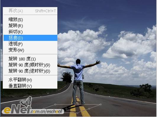 執(zhí)行【編輯—變換—扭曲】命令,將其變形,效果圖下圖所示。