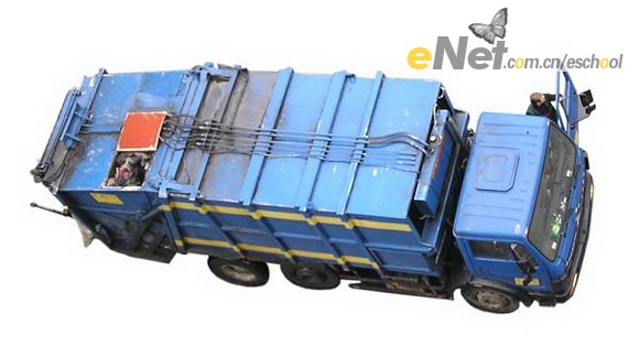 第二十八步:創(chuàng)建一個(gè)新組【車】,將“卡車”及其“影子”拖入。在圖層調(diào)板中調(diào)整各個(gè)圖層的順序,可參考下圖。