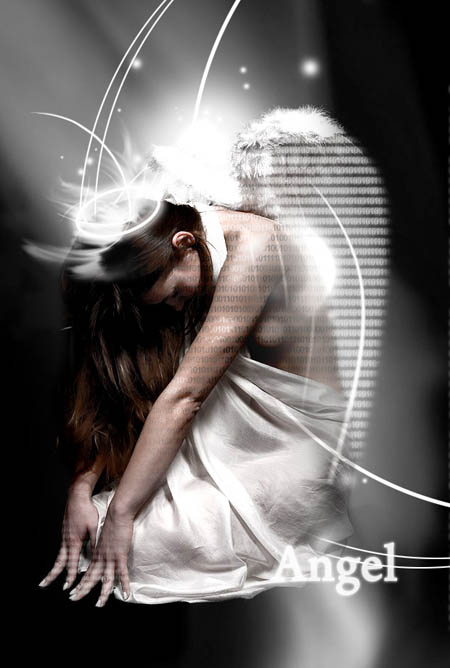 16、輸入“angel”字符,并為文字層添加外發(fā)光效果,完成最終效果。