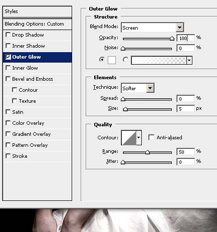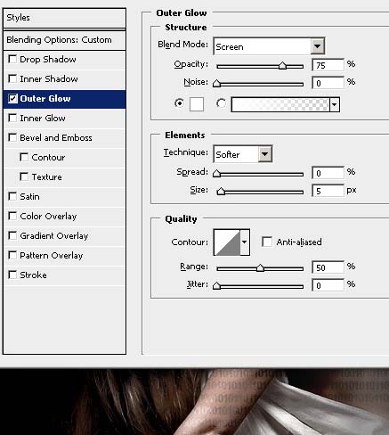 13、添加外發(fā)光,設(shè)置圖層不透明度為“70%”,填充為“79%”。