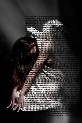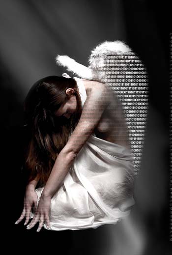 8、合并所有代碼層,選擇帶柔角的橡皮擦工具將左側(cè)和衣服上的代碼擦除,得到如下效果。