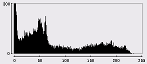 前面我們已經(jīng)知道,photoshop直方圖的x軸標(biāo)示亮度值,y軸標(biāo)示每種像素的數(shù)量。x軸的數(shù)值范圍是0~255,現(xiàn)在來討論一下y軸的范圍。