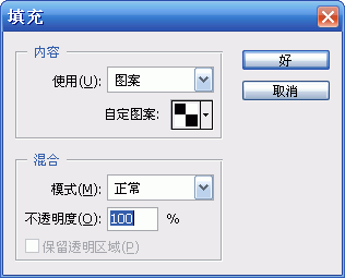 使用編輯>填充命令和前面定義的圖案來填充這張圖片。