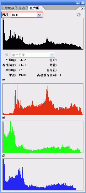 photoshop可以根據(jù)不同的通道來顯示直方圖,這些通道分別是rgb、紅、綠、藍(lán)、亮度和顏色,它們分別統(tǒng)計了不同的顏色數(shù)據(jù)。