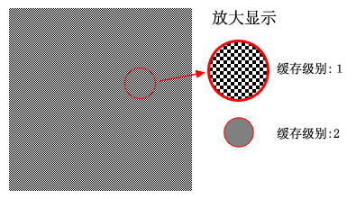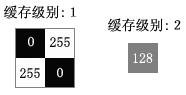 下圖是一張2*2像素的棋盤格圖片,緩存級別2的灰度值取原圖的平均值(0+255+255+0)/4=500/4=128。