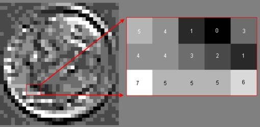 以灰度圖為例,假設(shè)我們的圖中一共只有0,1,2,3,4,5,6,7這8種灰度,0代表黑色,7代表白色,其它數(shù)字代表0~7之間不同深淺的灰度。