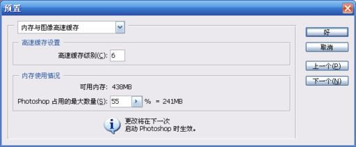 若要設(shè)定緩存級別,可以選擇菜單編輯>預(yù)置>內(nèi)存與圖像高速緩存(edit > preferences > memory and image cache)。photoshop cs2的緩存級別默認(rèn)值為6,適用于處理高質(zhì)量的數(shù)碼相機(jī)照片。