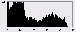 橫軸標(biāo)示亮度值(0~255),縱軸標(biāo)示每種像素的數(shù)量。