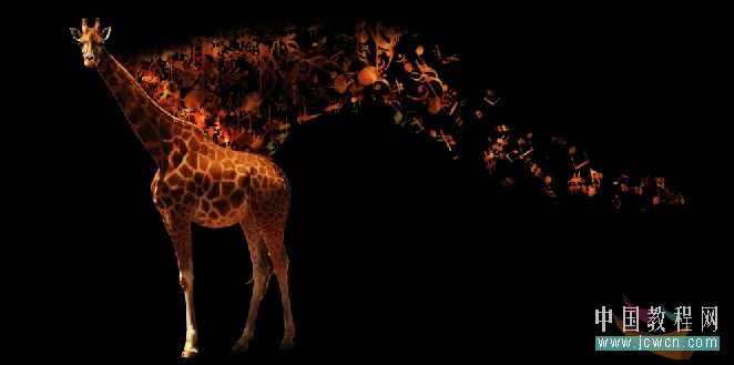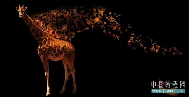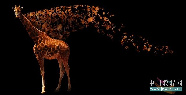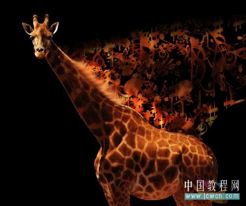 十九、長頸鹿和音樂層銜接的地方有些生硬,選擇涂抹工具配合模糊工具把鹿鬃毛處理一下,再用減淡工具把鬃毛加亮一些