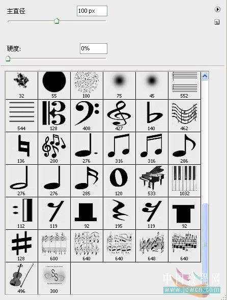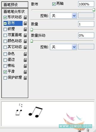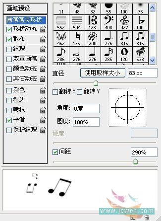 十二、按f5調出畫筆面板,選擇一個音樂畫筆,設置畫筆筆尖形狀如圖