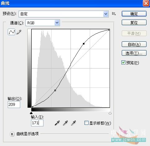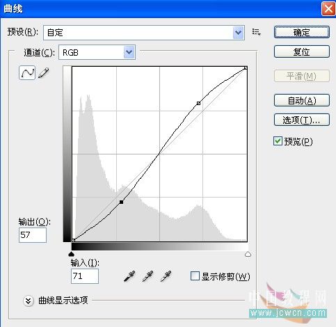 按ctrl+m調出曲線工具面板,調整數值如圖(不同的圖片素材,數值也不同,要多多嘗試)
