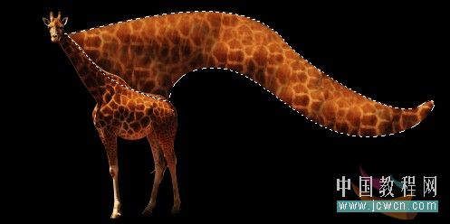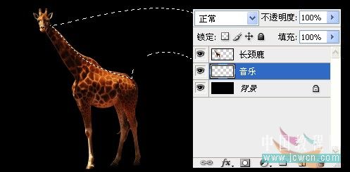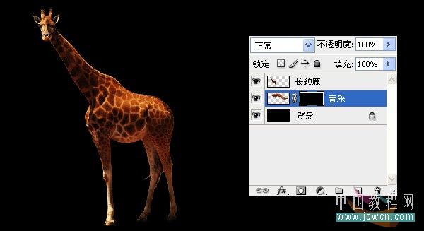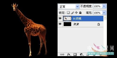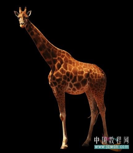 三、加一個黑色背景看看效果,感覺長頸鹿的色彩不夠豐富,我們用曲線來調整一下,讓它看上去明暗對比度大一些