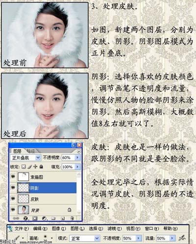 3、皮膚部分的處理,主要是調(diào)節(jié)皮膚及陰影等。 |