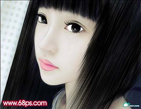 5、用直徑為3的鋼筆工具畫(huà)出發(fā)絲,這里說(shuō)明下,復(fù)制頭發(fā)時(shí)有些位置留點(diǎn)空際,或用直徑1的減淡工個(gè)涂出高光。 |
