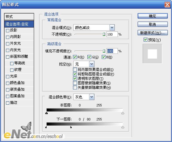 設置圖層樣式,混合模式設置為“顏色減淡”