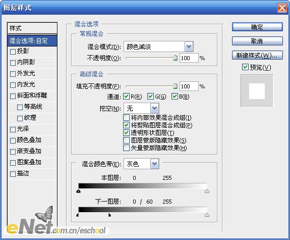 再次設置圖層樣式,混合模式設置為“顏色減淡”