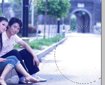 3、新建一個圖層,選擇橢圓選框工具在圖片右邊位置拉一個如圖6所示的橢圓,按ctrl + alt + d羽化,數值為45,然后填充顏色:#fda8ee,確定后把圖層混合模式改為“疊加”,效果如圖7。