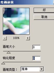 9、新建一個圖層,蓋印圖層,執行:濾鏡 > 藝術效果 > 繪畫涂抹,參數設置如圖18,確定后把人物及周圍擦出來,如圖19。