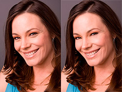 步驟 5、選擇修復筆刷工具(),按住 alt 并點擊鼠標選擇一處光滑皮膚,釋放alt 和鼠標左鍵,利用鼠標涂抹眼睛下方的細紋。