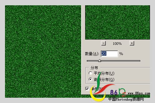 2、執行濾鏡—雜色—添加雜色,數量20%,高斯分布,單色。如下: