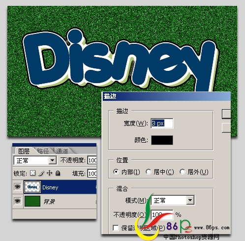 6、合并文字到一層,執行編輯—描邊,設置如下: