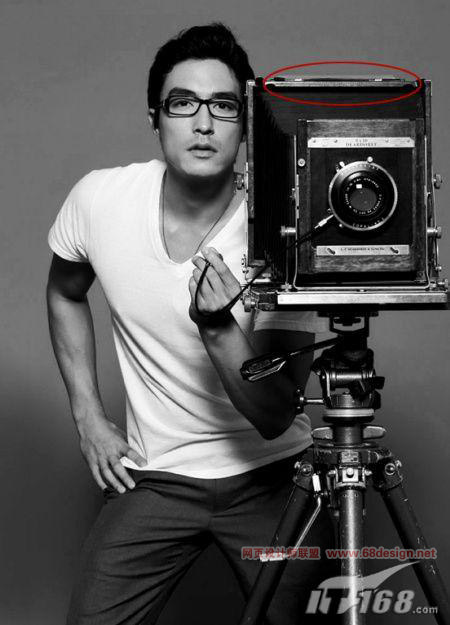 5.基本上整個(gè)畫面的效果就已經(jīng)出來了,但是不要忘記我們在觀察原始圖片的時(shí)候,在相機(jī)架的上方有一個(gè)亮藍(lán)色很突出,但是現(xiàn)在,這個(gè)位置卻顯得有些黯淡了(如下圖),這不符合原始圖片,所以我們還要將這個(gè)位置調(diào)正一下: