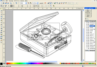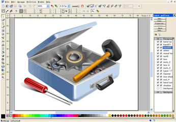 等我們把前面的過程走完了,心里有底了。自己覺得草圖已經很清楚的表達了自己的想法,并且也能與功能信息密切的吻合,(我一般是把畫好的圖標作個現場測試,給同學或同事看,同時問他是否能理解我畫的圖標含義)那就開始偉大的渲染工程吧!這里要說下工具問題,很多人都問,要用什么工具來畫圖標,我的回答是,只要能畫出來,達到目的,什么都可以,哪怕是手繪后掃描再編輯。一般我們用photoshop、illustrator、firework等軟件來繪制,這要看你的習慣,以及對軟件的熟悉程度。我用的就是比較偏的軟件xara xtreme pro,這是個矢量軟件,功能強大,速度快。但軟件體積很小,功能比較專注于繪制,繪制方式自由,只要你有藝術功底,就可以繪制漂亮的圖標。下面我會以過程方式講述xara繪制圖標的過程。