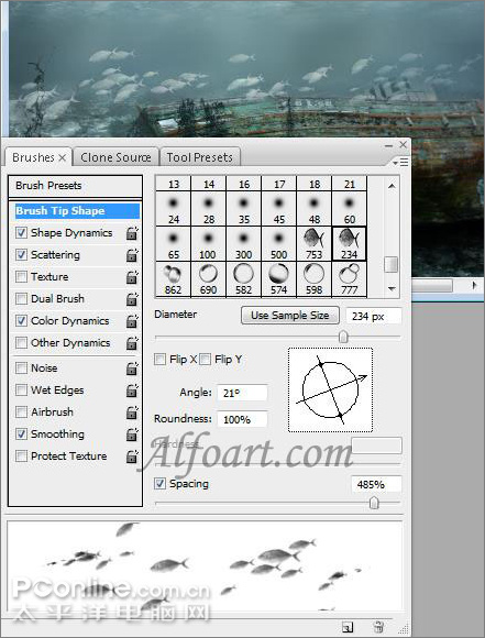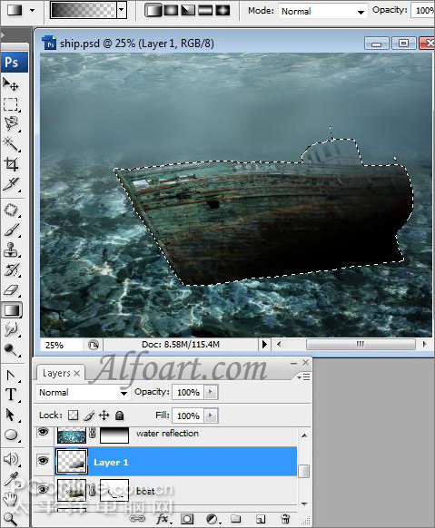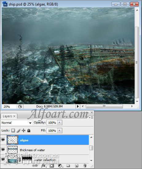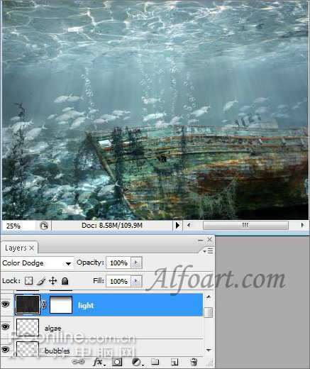 本文介紹運用ps輕松合成打造出一個魅力無限的水底場景,教程主要講解了運用自由變換、ps蒙版、濾鏡、自定義畫筆等方法呈現出美麗又神秘的海底沉船,喜歡的朋友打開你的ps一起來制作吧!