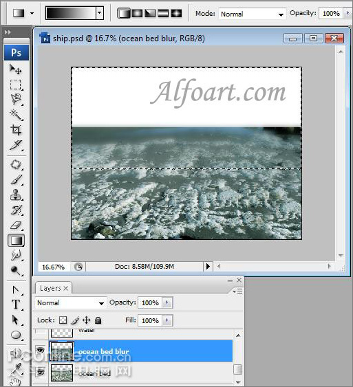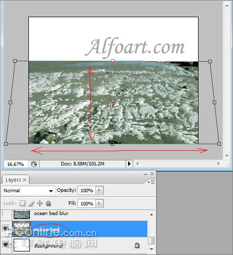 ·把這個圖層移動到“海底”圖層之上,把圖像拉伸至合適的大?。▌偤酶采w海底)