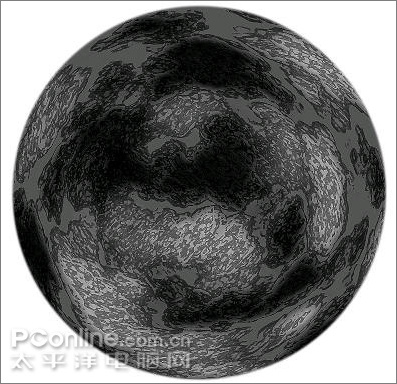 10、進(jìn)一步修飾球體,這時(shí)球體上半部中間可能有一條明顯的直線(本例沒(méi)有)用修復(fù)畫筆工具 或污點(diǎn)修復(fù)畫筆工具