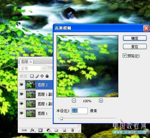蓋印圖層,對(duì)蓋印層執(zhí)行高斯模糊操作,數(shù)值可根據(jù)個(gè)人喜好設(shè)定,數(shù)值越大細(xì)節(jié)越少。