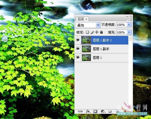 本文介紹的方法,適合于色彩鮮艷的風(fēng)景圖片,油畫一般色彩鮮艷.因此我們要先對(duì)圖像進(jìn)行色彩飽和度的調(diào)整:復(fù)制一份模式為疊加以加強(qiáng)飽和度和層次感,可根據(jù)情況再疊加一層。