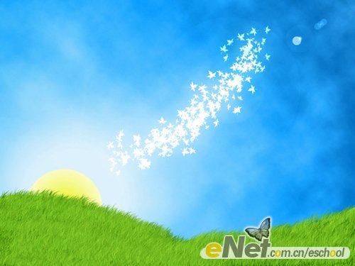 第六步:新建圖層,設(shè)置前景色為白色,使用素材筆刷中的星光筆刷,調(diào)整筆刷大小,在美眉兩個(gè)眼睛位置畫上閃光效果再?gòu)?fù)制三層留做閃光效果之用。效果見[圖片6];