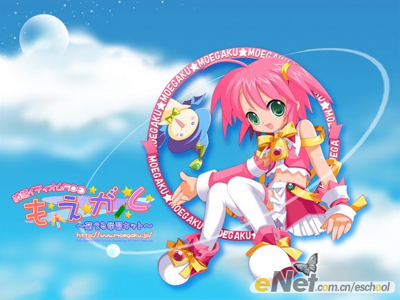 第二步:打開素材背景,把進(jìn)行了簡(jiǎn)單美白的卡通美眉放在右下角,縮小圖片到500×292像素;效果如[圖2]所示;