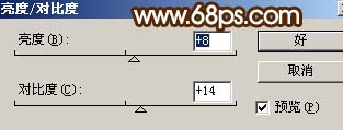 8、創建亮度/對比度調整圖層,參數設置如圖13,確定后只保留人物臉部,其它地方用黑色畫筆擦掉,效果如圖14。
